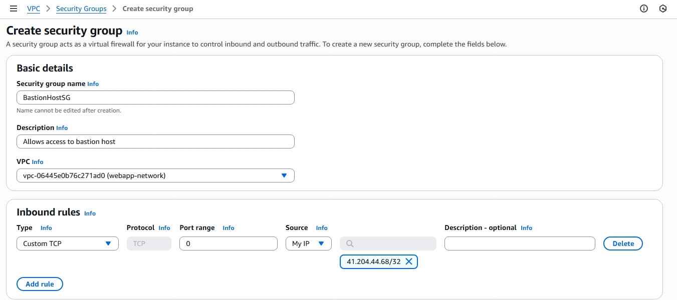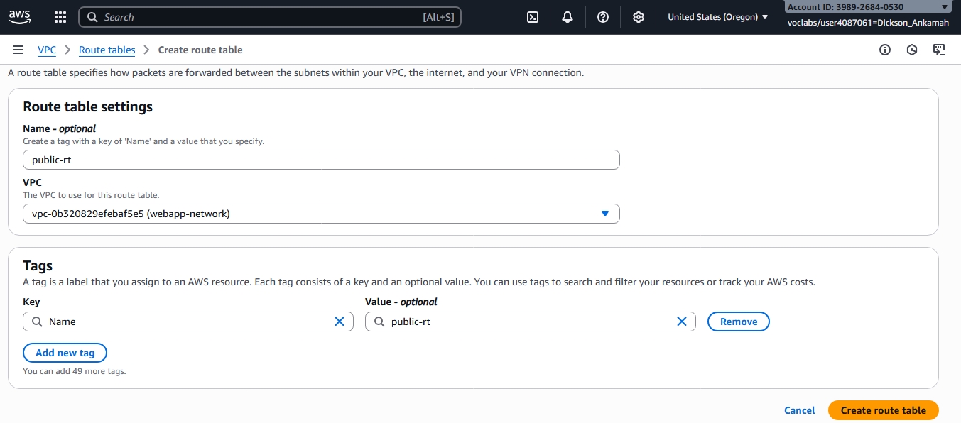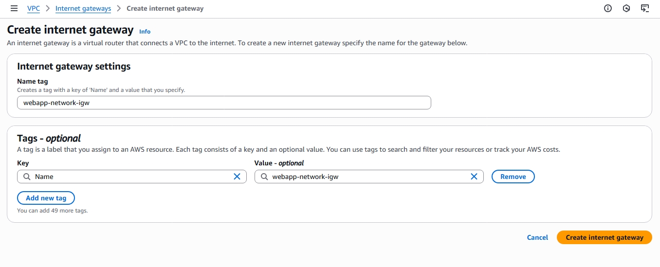 Choose the VPC created earlier ("webapp-network").