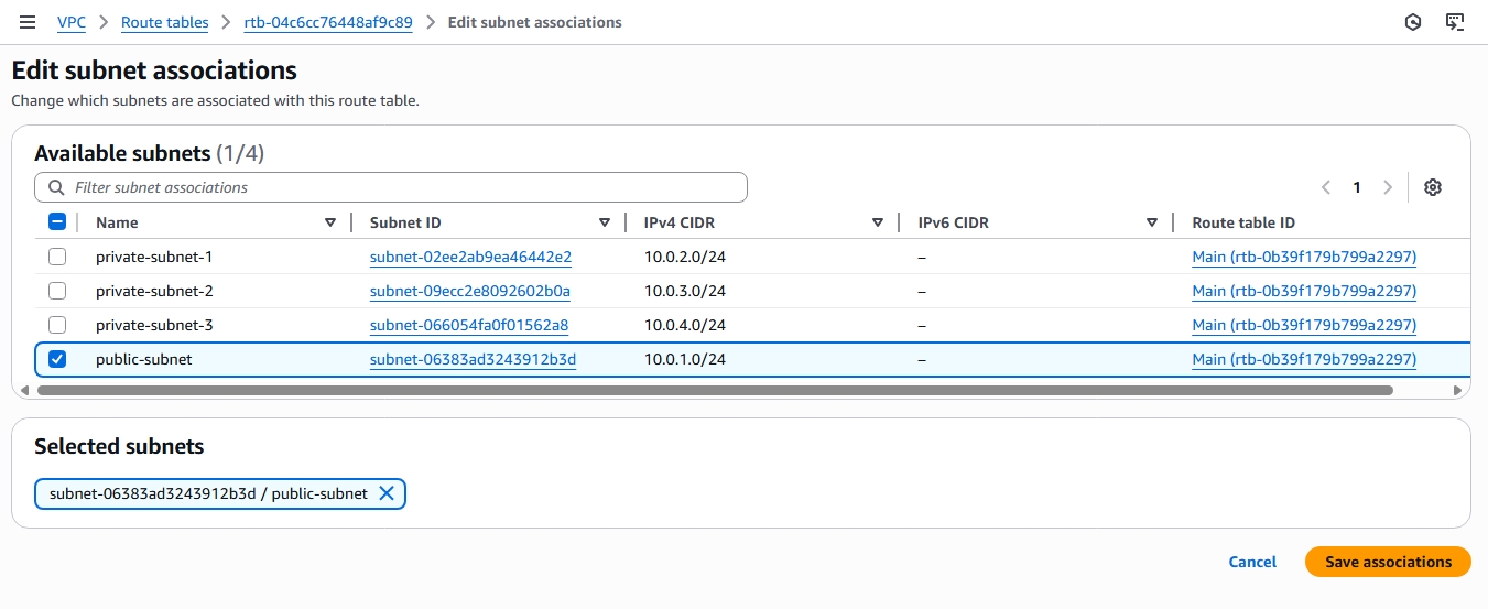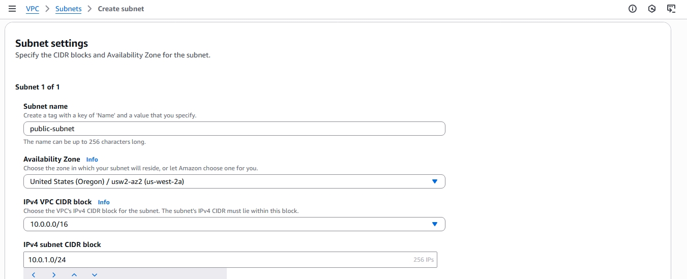 • Let's name it "public-subnet" since it's the only public subnet