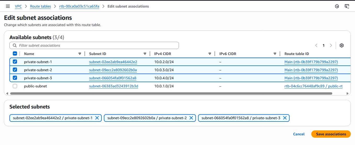 • We'll name them "private-subnet-1", "private-subnet-2", and "private-subnet-3" respectively
