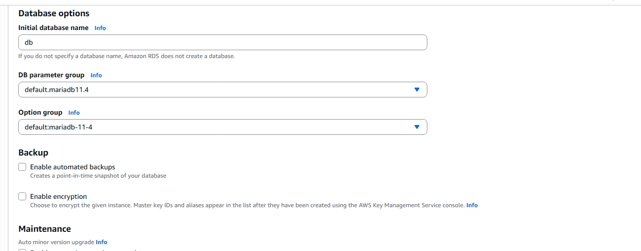 - This will create a database named "db" on the database-instance• Since this architecture isn't fully functional, we will uncheck the backup and monitoring options for faster database creation