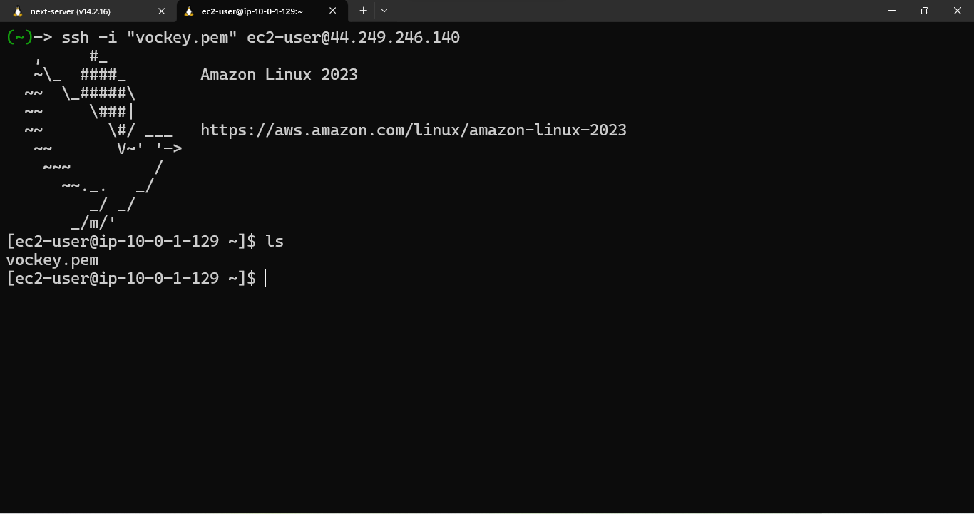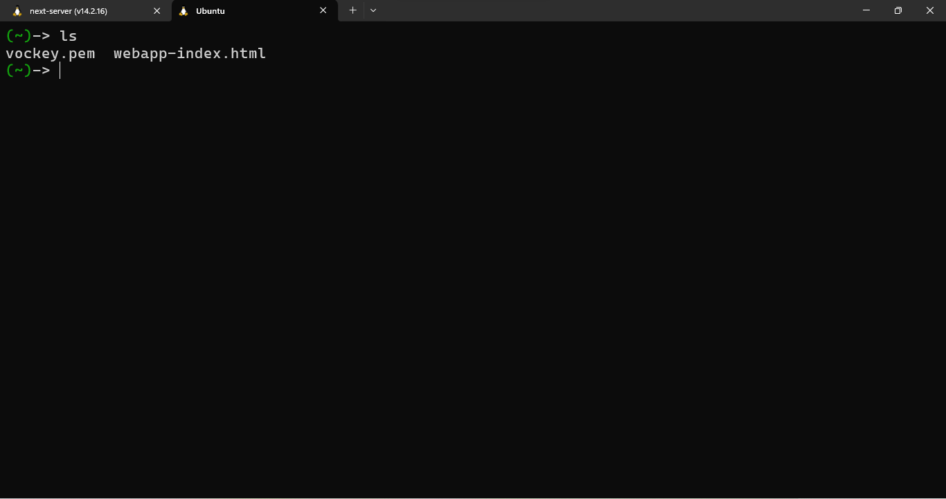 "ls" to see if the key pair file we uploaded is there