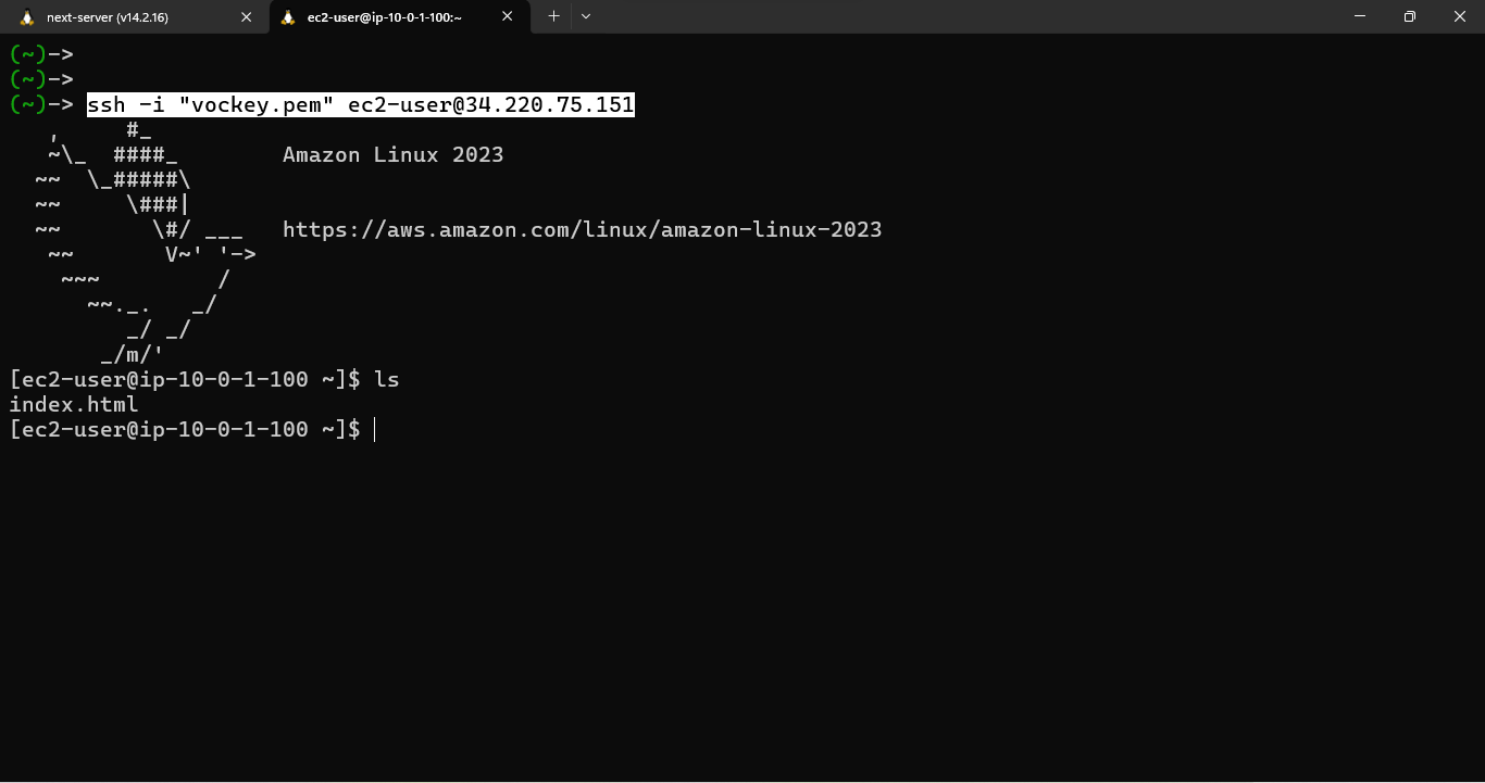 ssh -i YOUR-KEY-PAIR.pem ec2-user@YOUR-WEB-SERVER-PUBLIC-IP